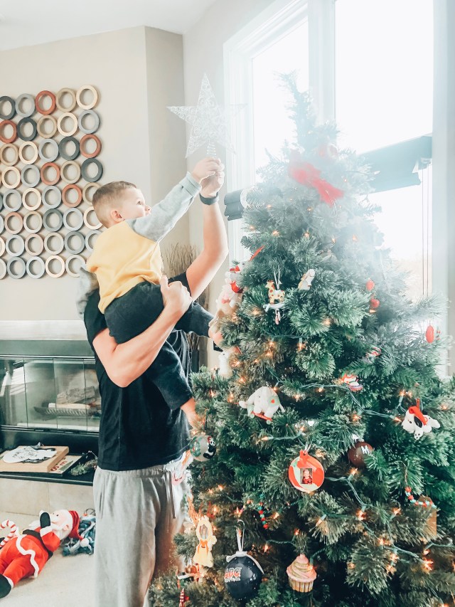 we got the tree up and fluffed and immediately let the kids start hanging ornaments. this is always one of my favorite parts about getting ready for the holidays; just watching the littles make these memories; seeing them smile as they hang the ornaments one-by-one on the tree.