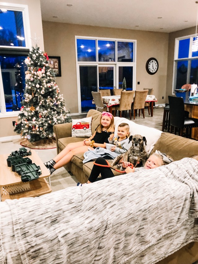 our plan is to hopefully get another tree or two for our front room and family room downstairs, but wanted to get our main tree up while we had our kids for the weekend. so saturday morning we woke up and hauled all the christmas decor upstairs.
