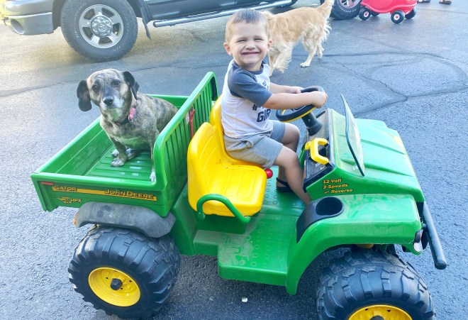Mason got his very own John Deere gator powerwheel and it was the perfect surprise. He LOVES it and is so proud to show off his “tractor”. The girls take turns with it too and they all enjoy having Mazi girl ride around in the back.