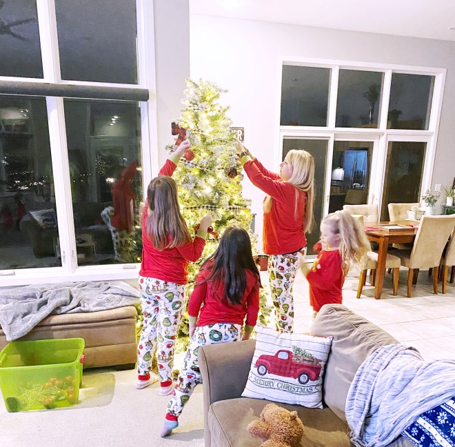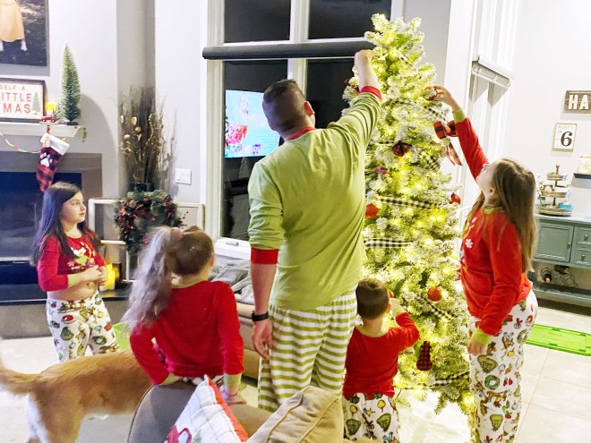 decorating the christmas tree is one of my favorite traditions; it’s always just so special having the family do it all together. the boys always have the responsibility of putting the star up at the end and i smile so big every time i see mason so happy to do so.