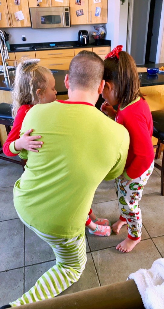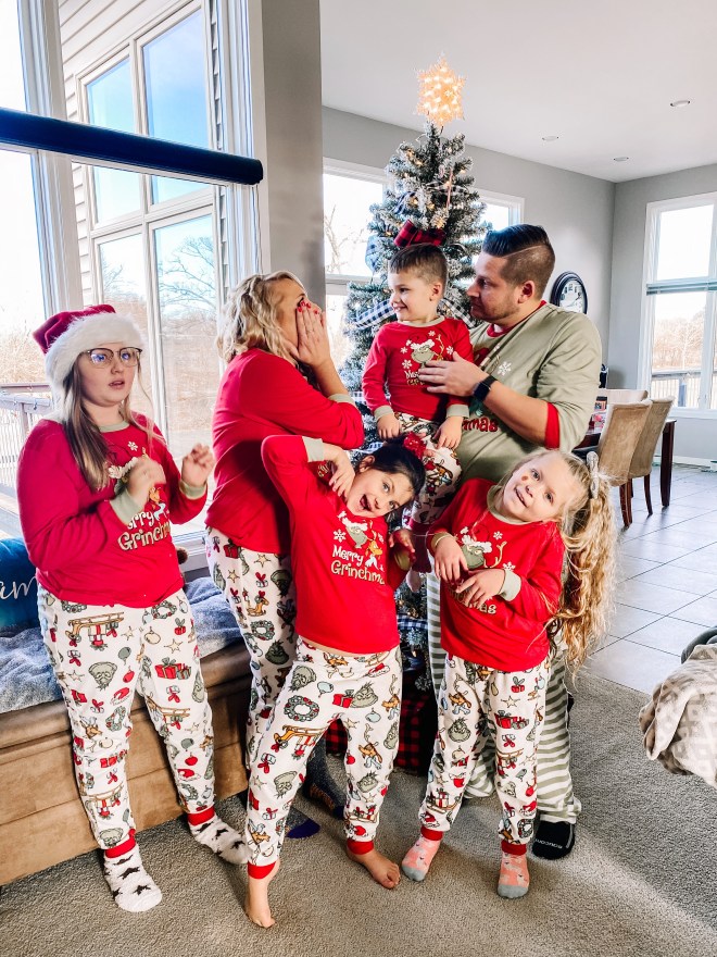 around 10am the kids came home, faces filled with smiles and telling us all about their mornings. they were happy to be home and even more happy after seeing more presents piled for them under the tree. we all changed into our matching family christmas pajamas and nestled around the tree.