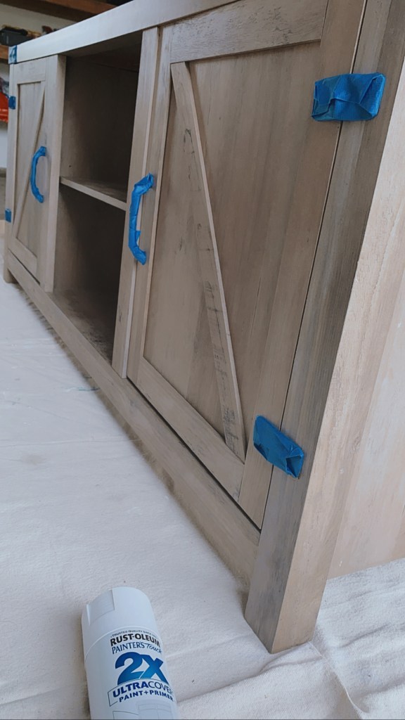 rather than buying a new stand for below our tv, i diy’ed our old entertainment stand from the living room. with a bit of sanding and a bright white color painted on, the result was exactly was what i was hoping for. i love that we decided to keep the old color on the top; it gives it more of a “rustic feel” and makes the white stand out.