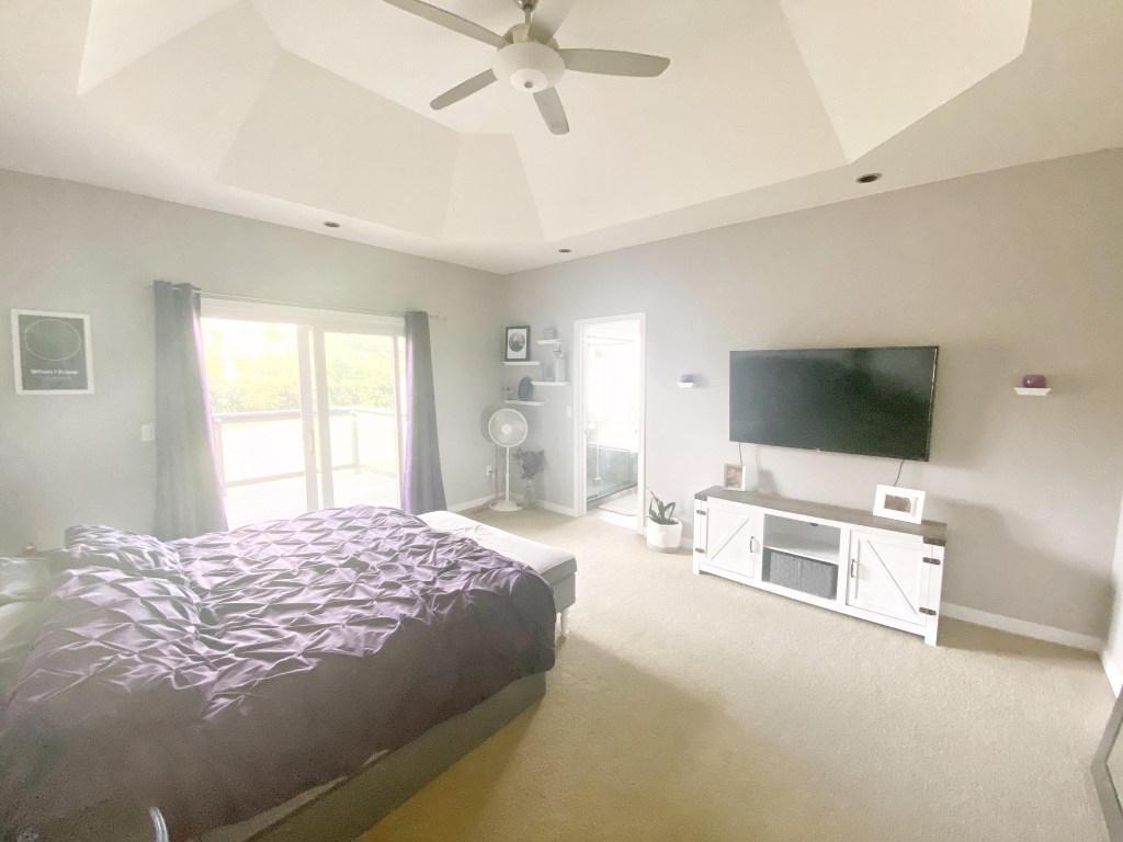 we both love the color purple so we knew from the very begining that we wanted to accent with purple. we bought some new curtains for the sliding door to our balcony and a purple comforter to match.