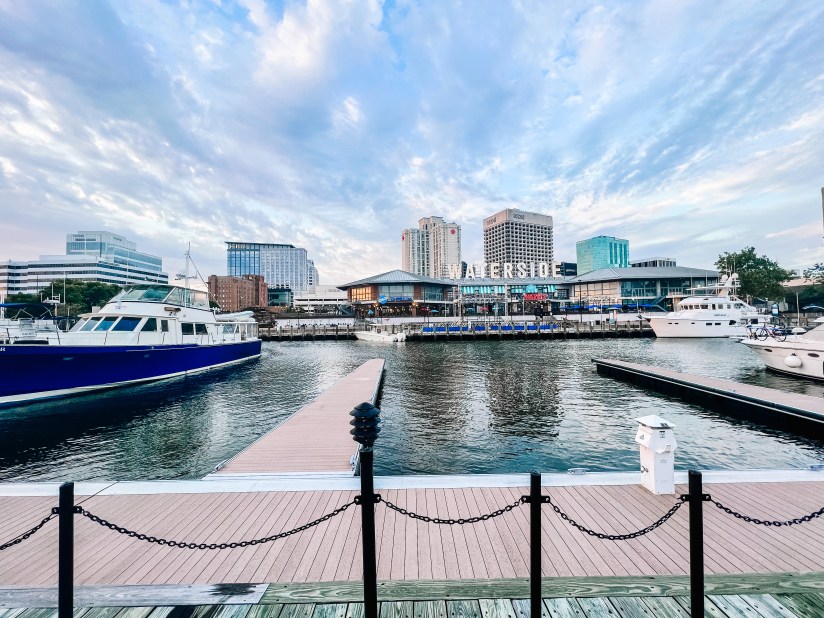 We stayed about 20 minutes outside of Virginia Beach, in Norfolk. We booked the next four nights at the Hilton Norfolk The Main and were blown away with the property! Not only was the hotel stunning, but the views of The Waterside District were breathtaking!