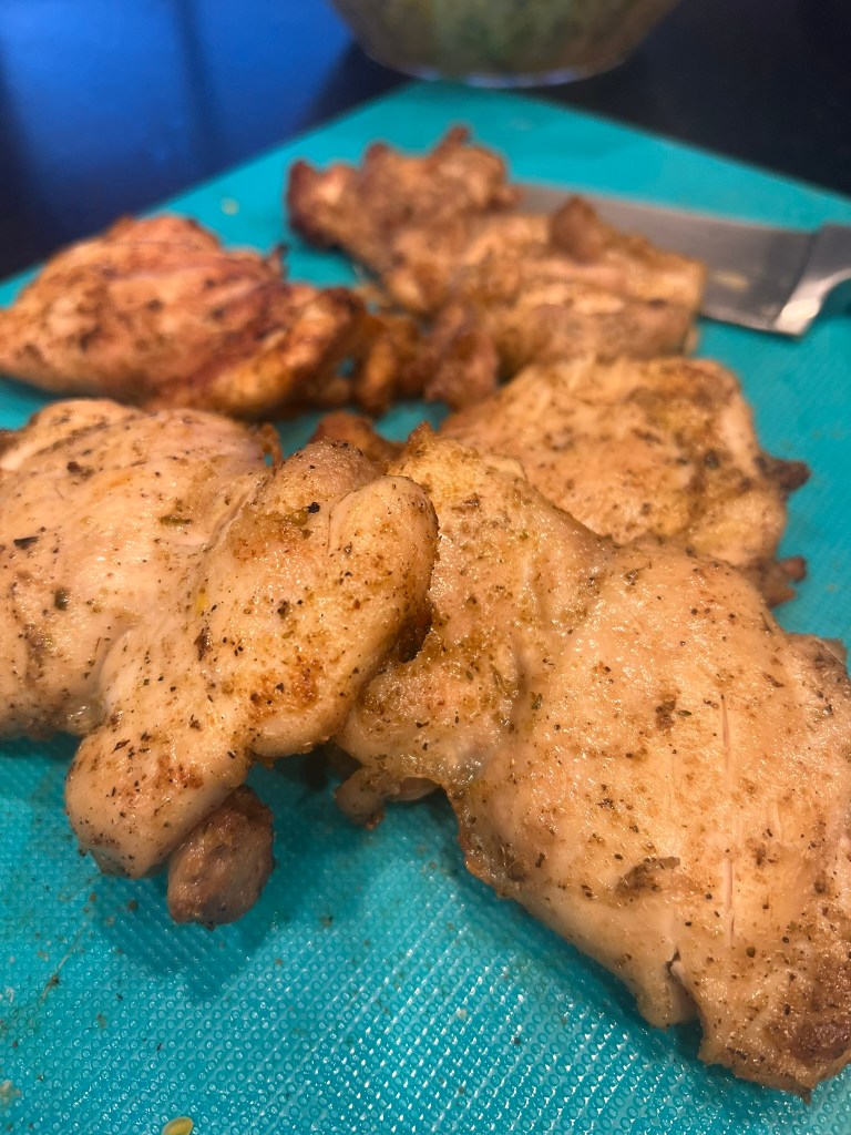 - Grill chicken thighs for 6-8 minutes per side or until fully cooked at 165 degrees.