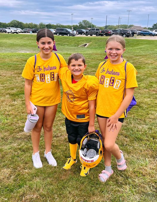 Aubrey and Mahkena signed up for the Junior Indians Cheer Team, while Mason is out on the field being a football player.